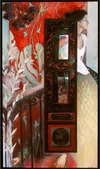 Chinese Screen (40"x80") Oil on Canvas with Antique Wooden Chinese Screen